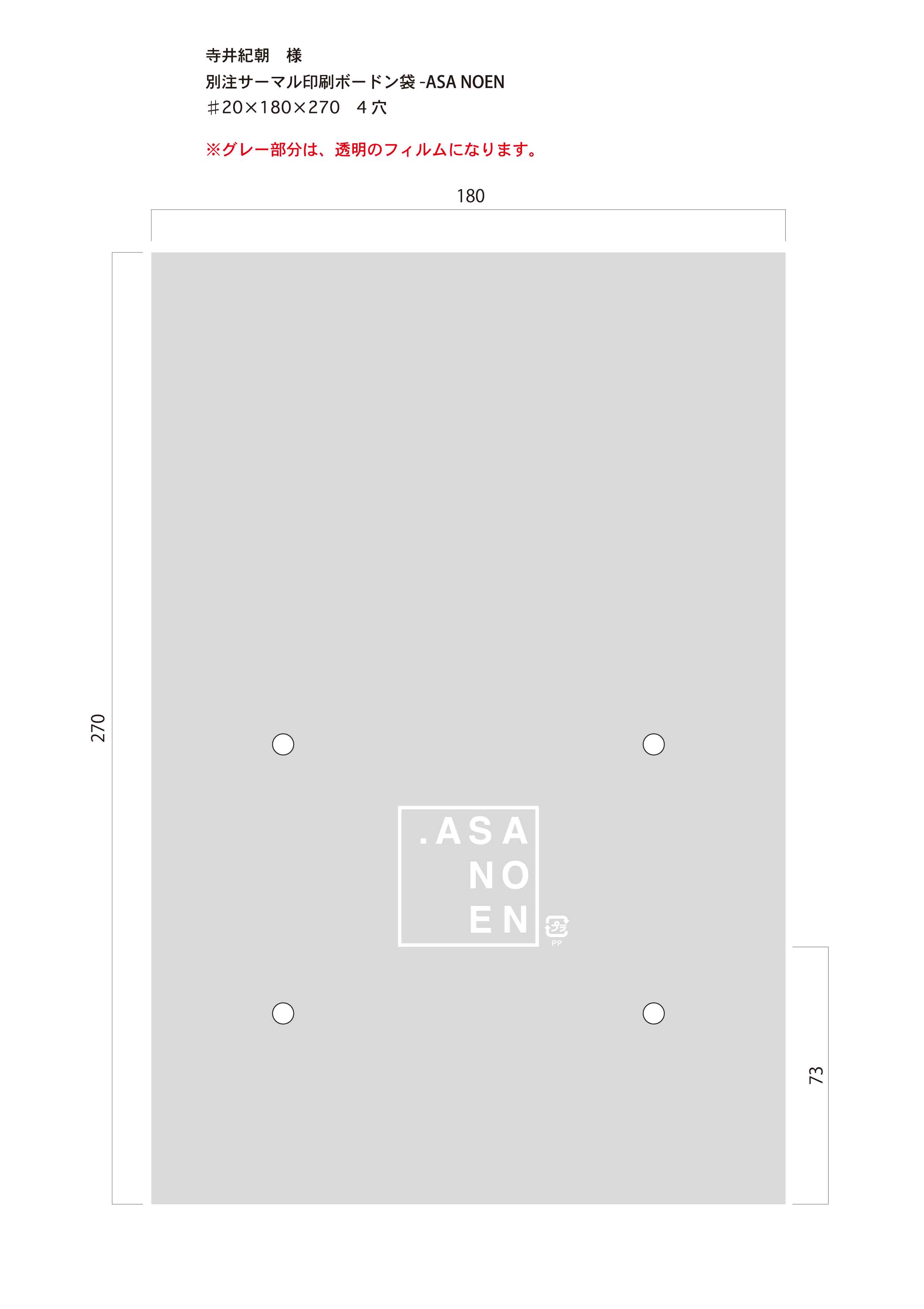 別注ボードン袋 ASA NOEN 白印刷 ♯20 180×270(10号)4穴加工あり 8,000枚