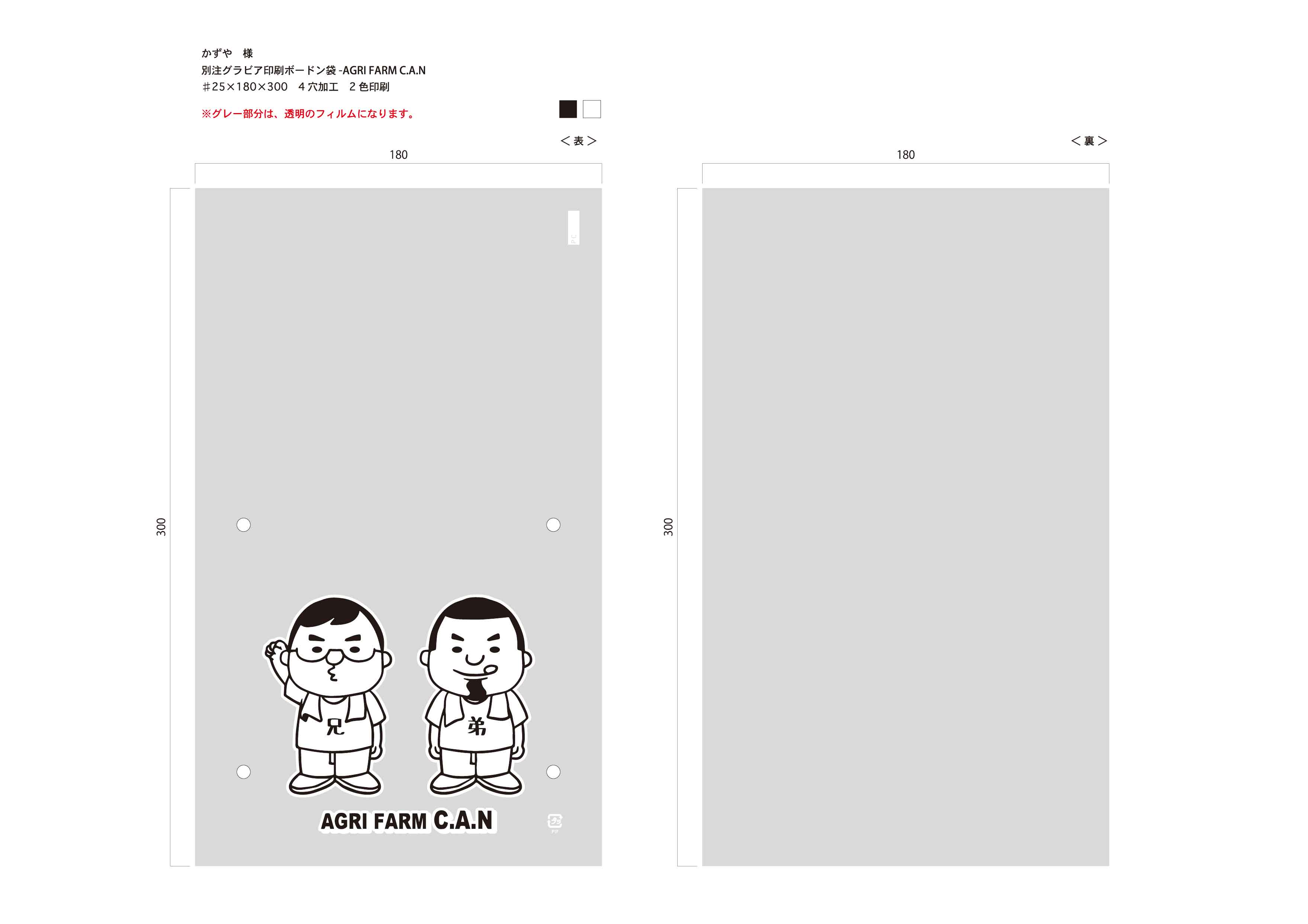別注ボードン袋 AGRI FARM C.A.N ♯25 180×300(10号ロング) 2色印刷 約22,000枚