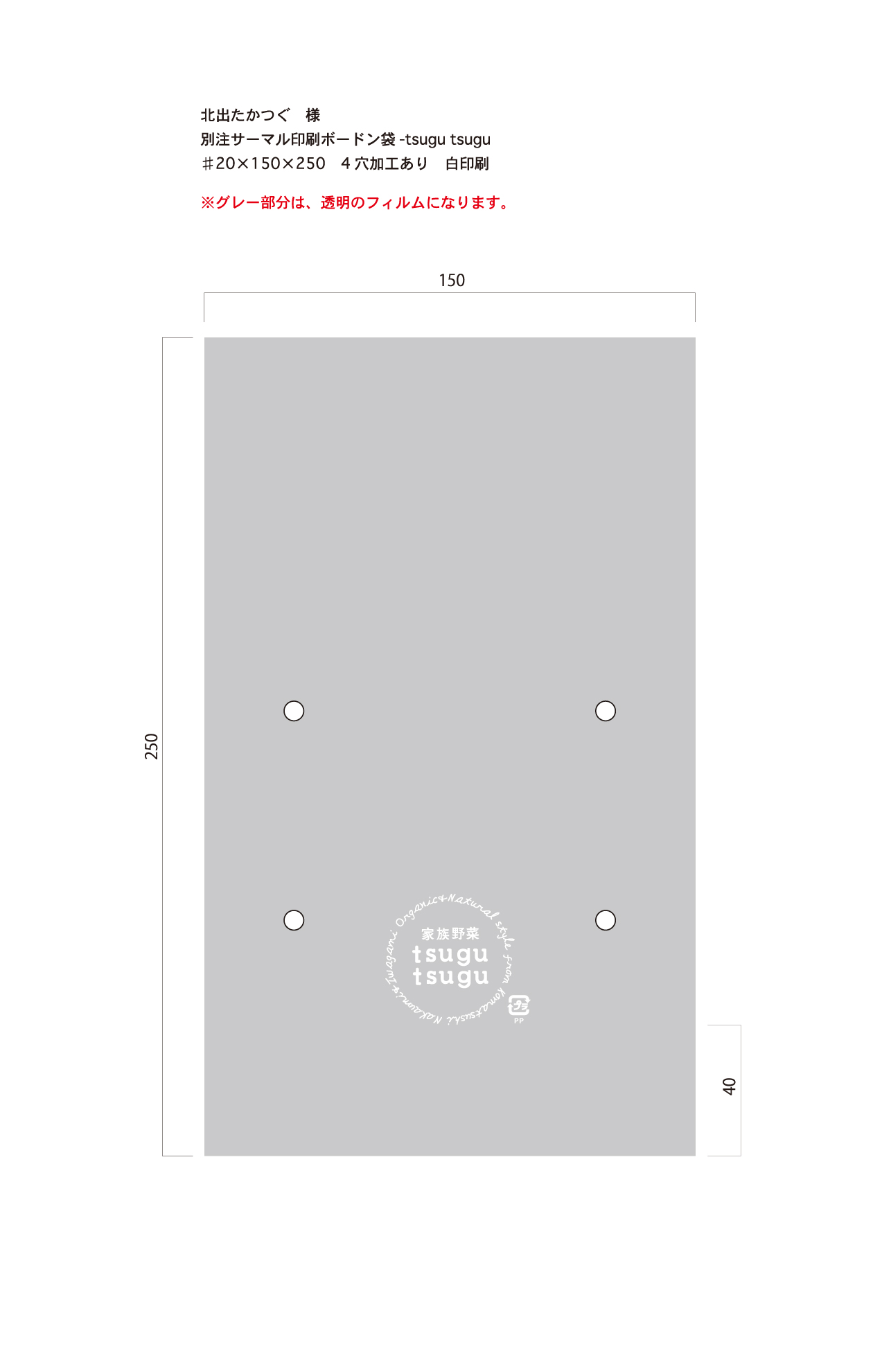 別注ボードン「tsugu tsugu」サーマル白 ♯20 150×250 4穴 2,000枚