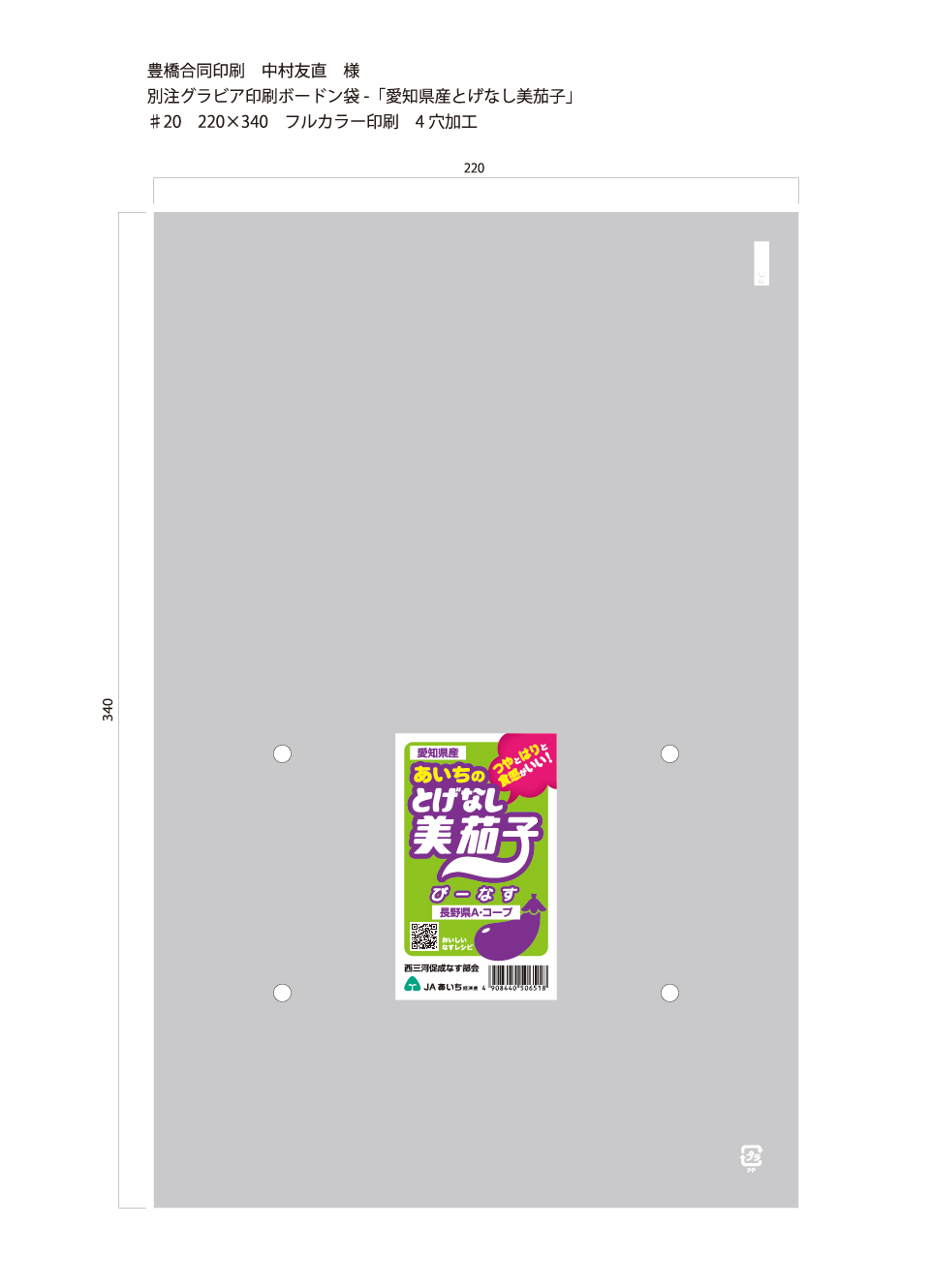 別注ボードン ♯20 220×340 とげなし美茄子 フルカラー印刷 54,000枚