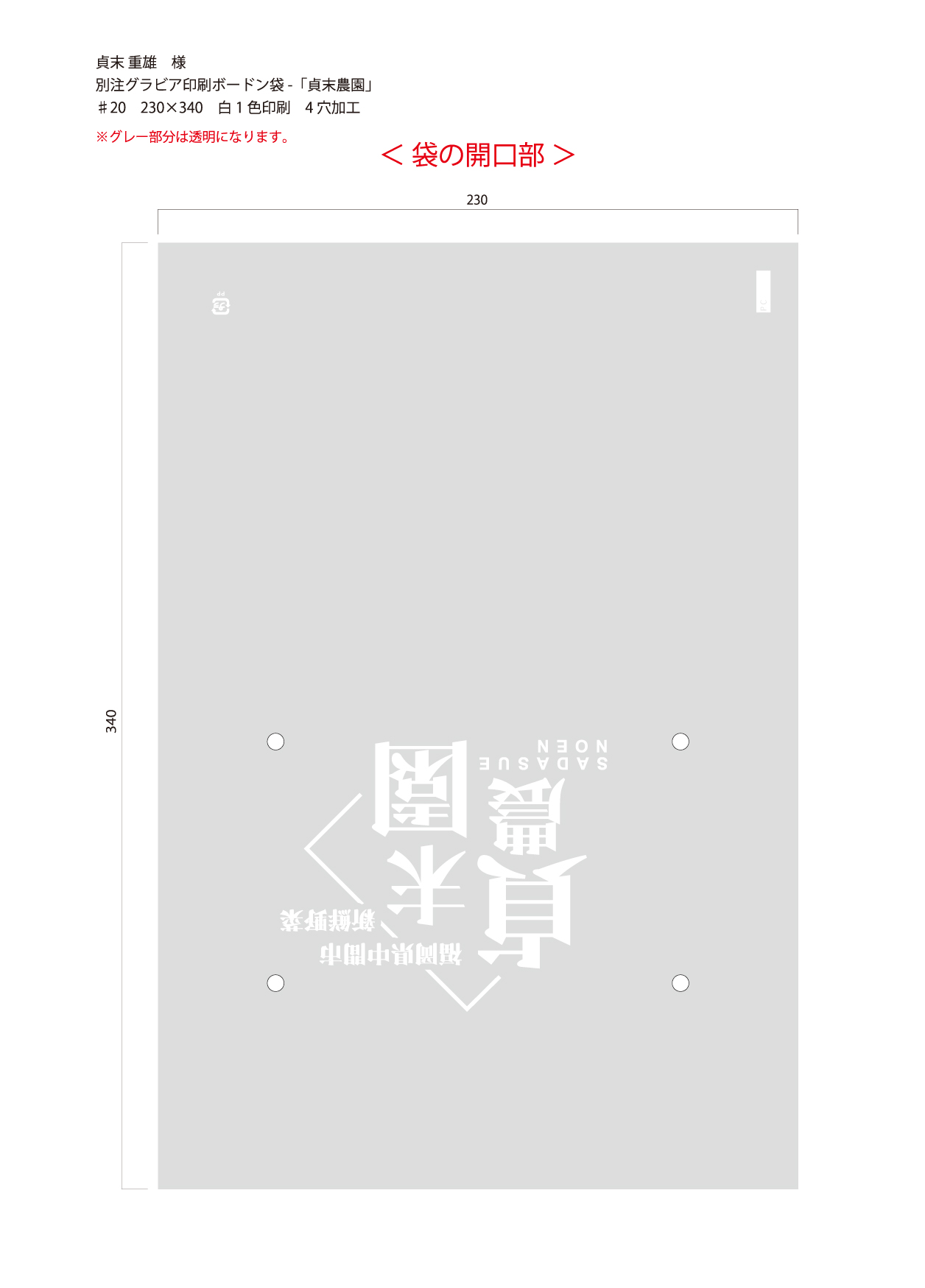 別注グラビア印刷ボードン袋 貞末農園 ♯20×230×340 4穴 1色 16,000枚